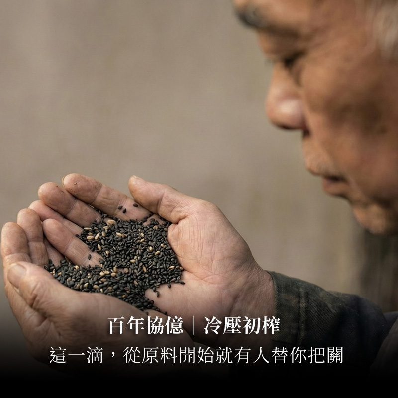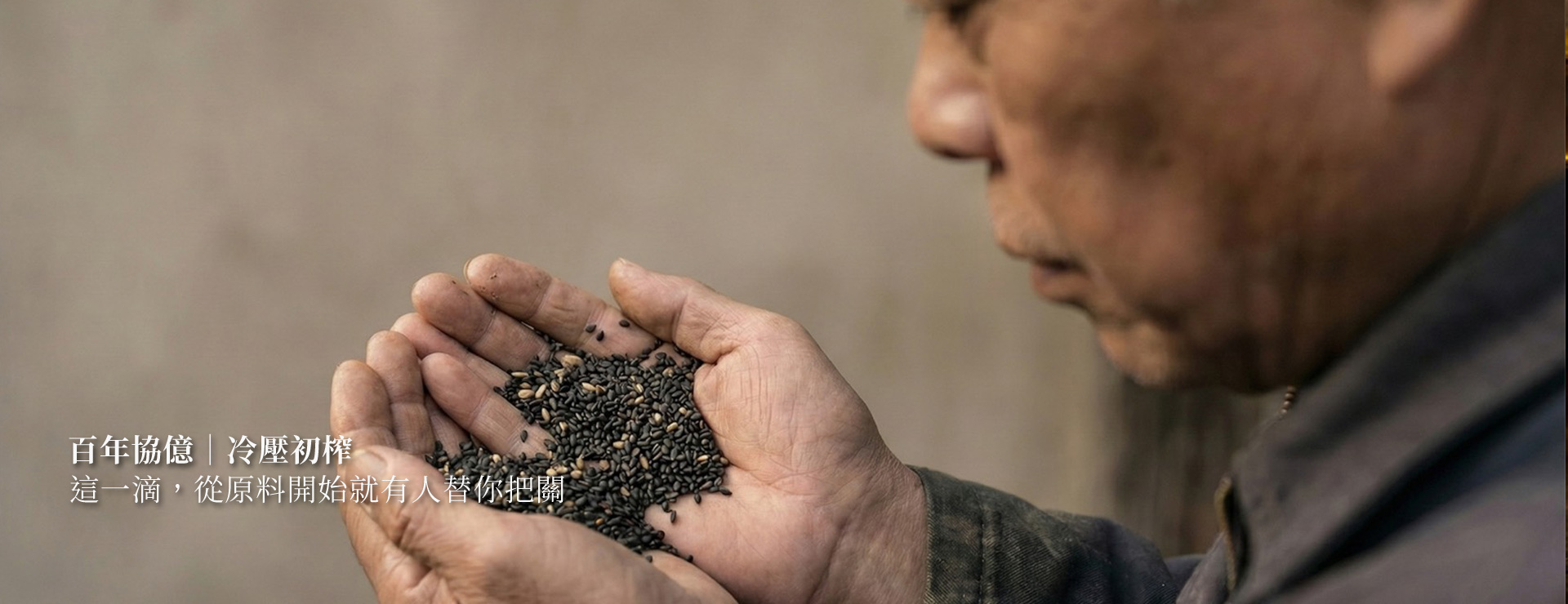 我們堅持使用冷壓初榨工法,從原料挑選、低溫處理到出油,每一個環節都不假他人之手。